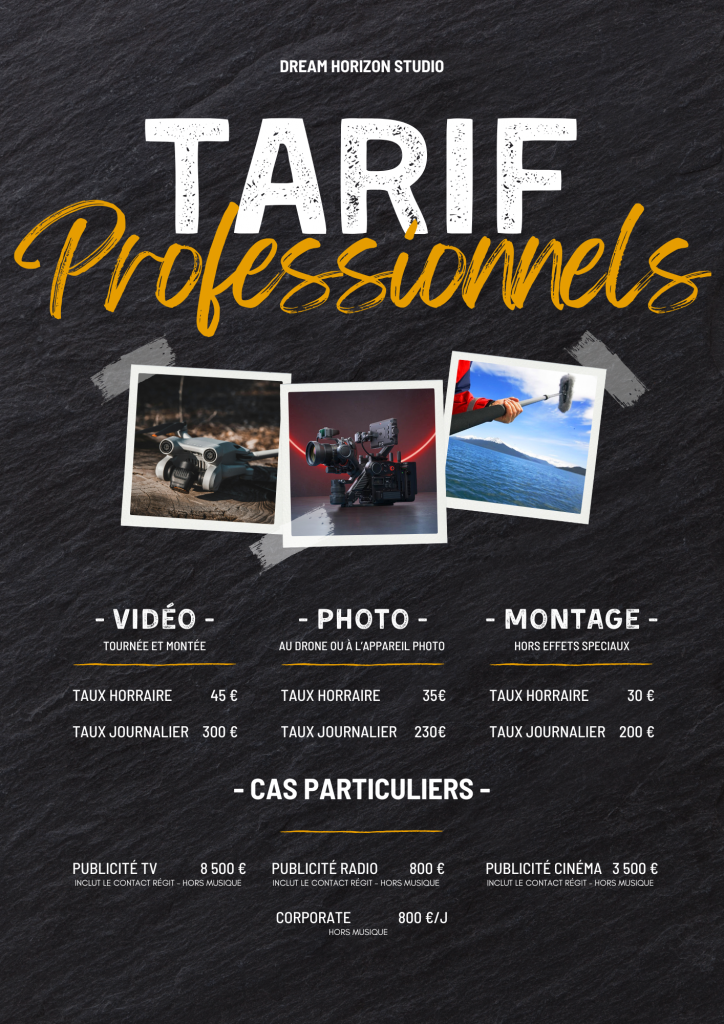 Chez Dream Horizon Studio, nous accompagnons les entreprises, marques et institutions dans la création de contenus vidéo percutants et professionnels. Que ce soit pour promouvoir un produit, capturer l’essence d’un événement ou renforcer votre image de marque, nous mettons notre expertise à votre service pour réaliser des vidéos engageantes et impactantes.
